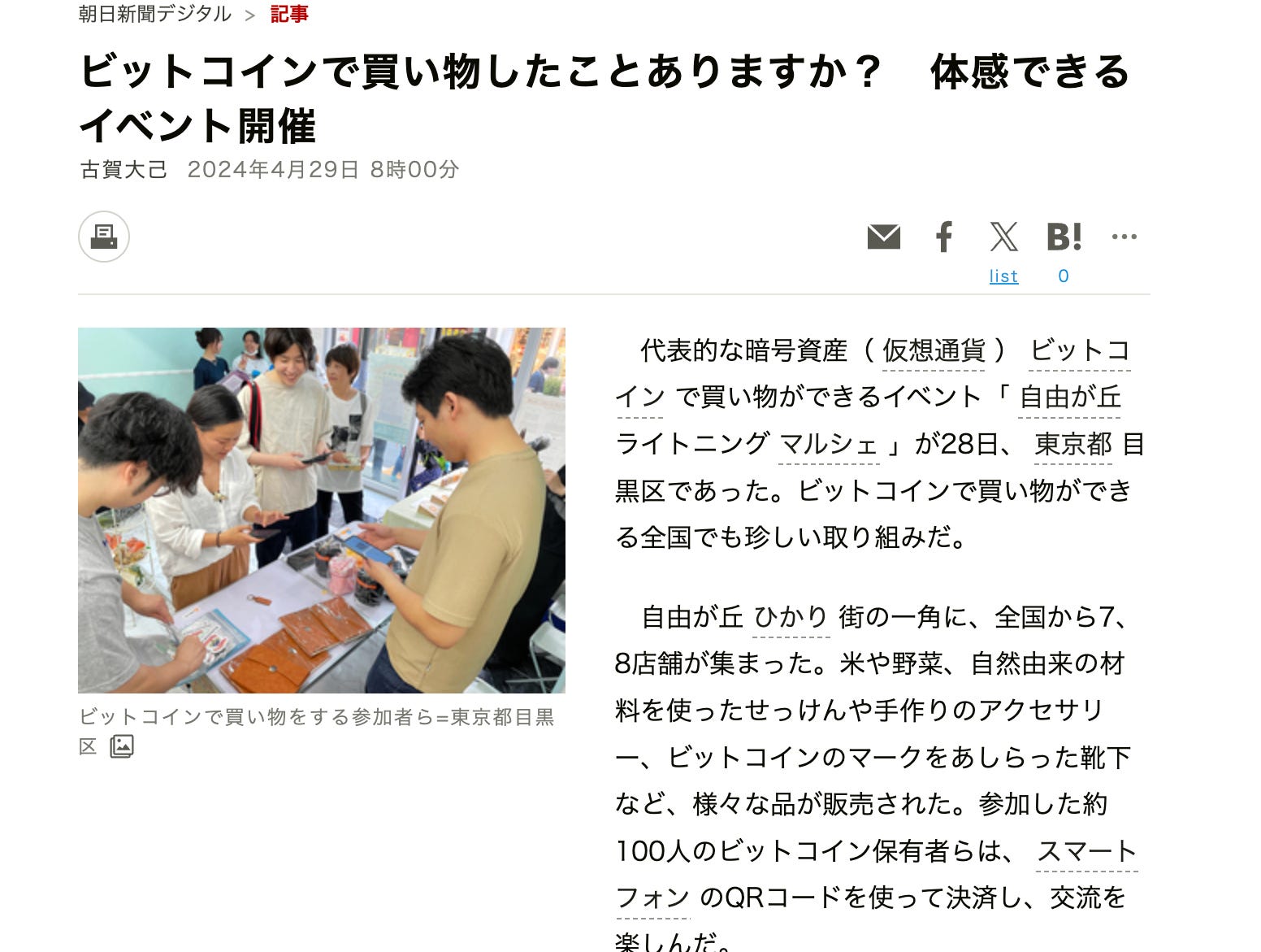 ただ実際に記者の方もマルシェに参加して実際にライトニング決済を体験したところ、想定以上に食いつきが良かったようで、実際に掲載された記事もこの手のビットコイン関連の記事では珍しくポジティブな内容のものでした。