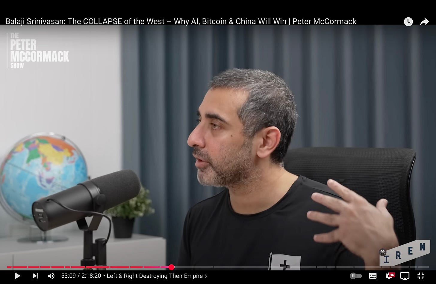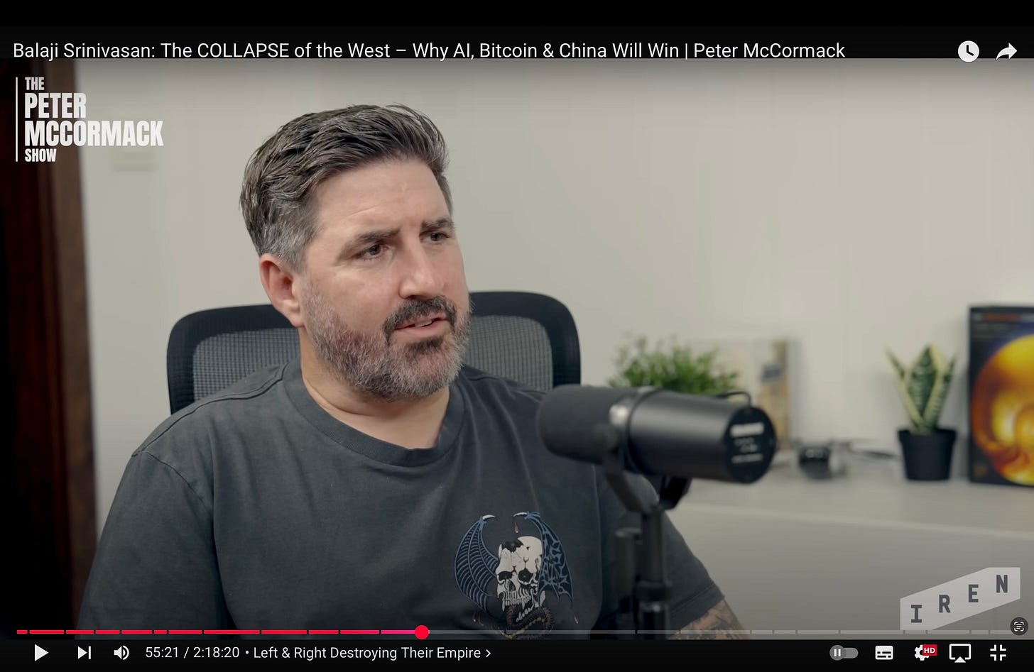 テーマは「西洋の衰退」「中国の台頭」「AIの破壊的影響」「ドル体制崩壊の中でのビットコインの役割」「アメリカを引き裂く政治的分断」などについて。