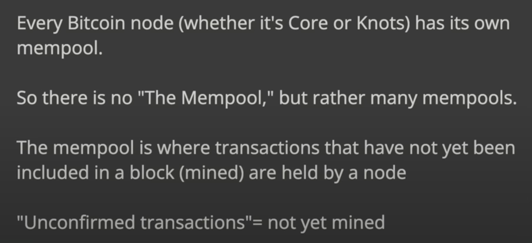 すべてのBitcoinノード(CoreでもKnotsでも)は、それぞれ独自のメモリプール(以下、Mempool)を持っています。