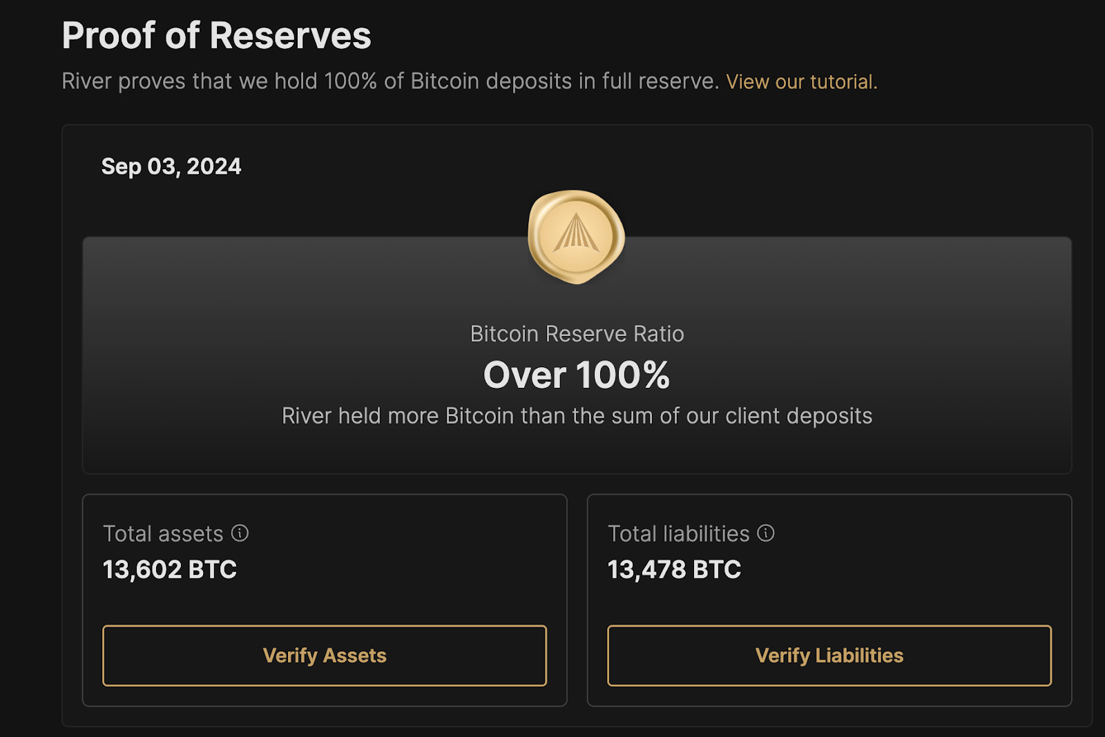 River、Bitcoinデポジットの100%を完全にリザーブしていることを証明するProof of Reservesを発表(出典:9/3付)