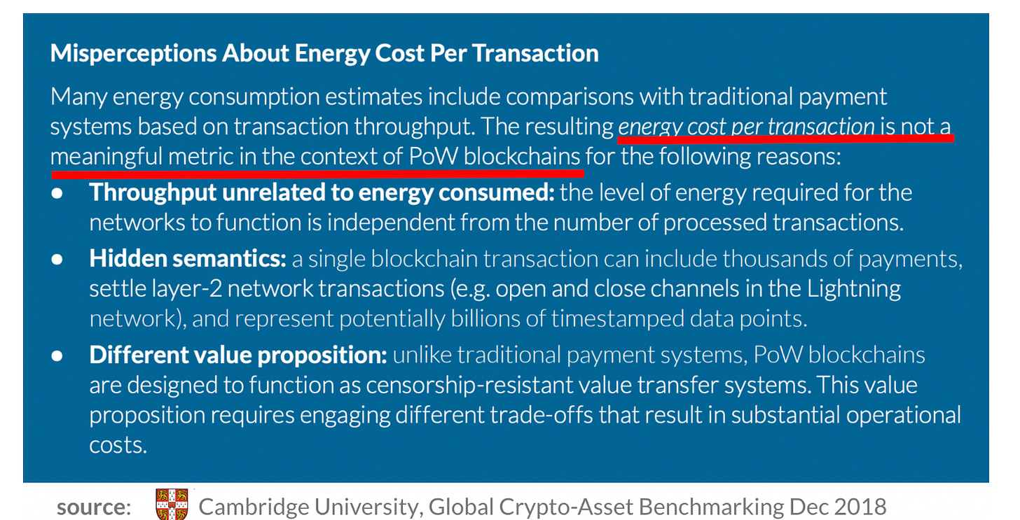 ケンブリッジ大学も、トランザクションあたりの測定は「PoWブロックチェーンの文脈では意味のある指標ではない」として却下している
