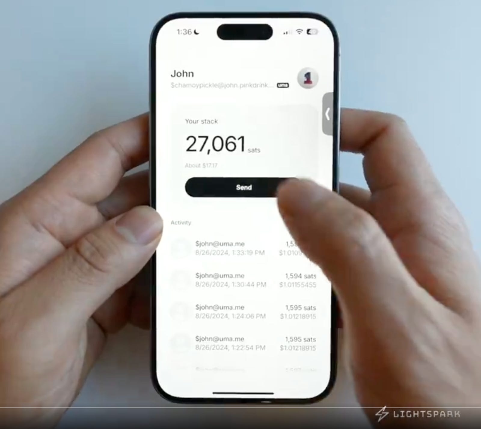 UMA および Lightning 対応のウォレット、取引所、または銀行口座から、Bitcoinを使用して支払いを送信できる。