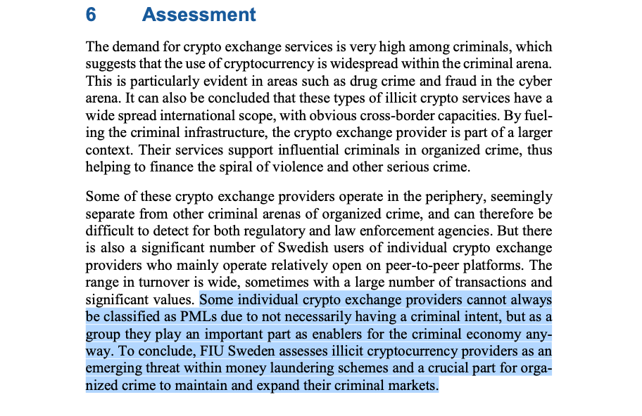 スウェーデン警察当局(FIU)によるレポート「Crypto exchange providers - Professional Money Launderers」(出典)