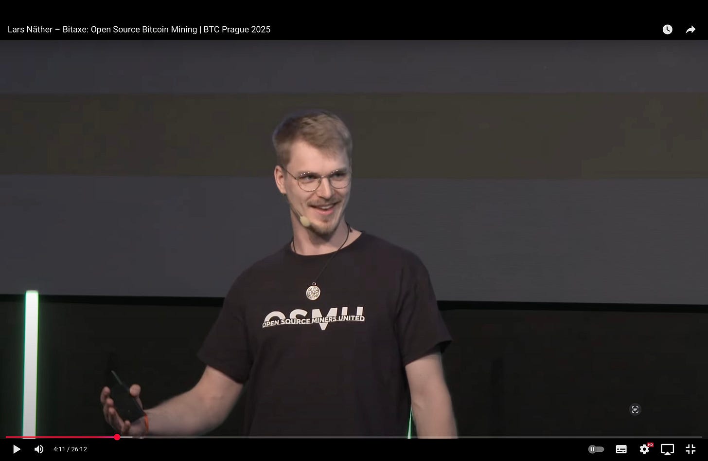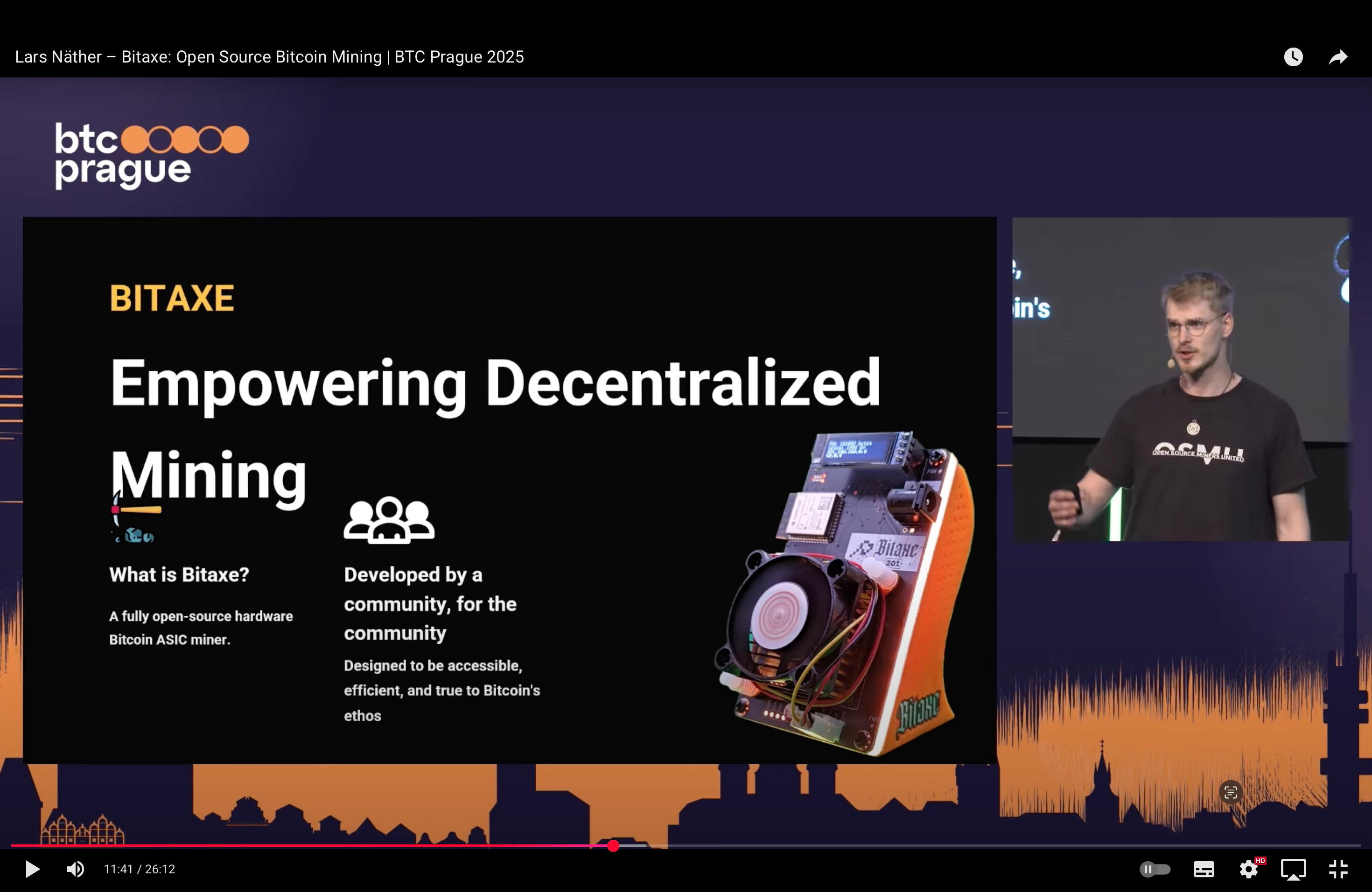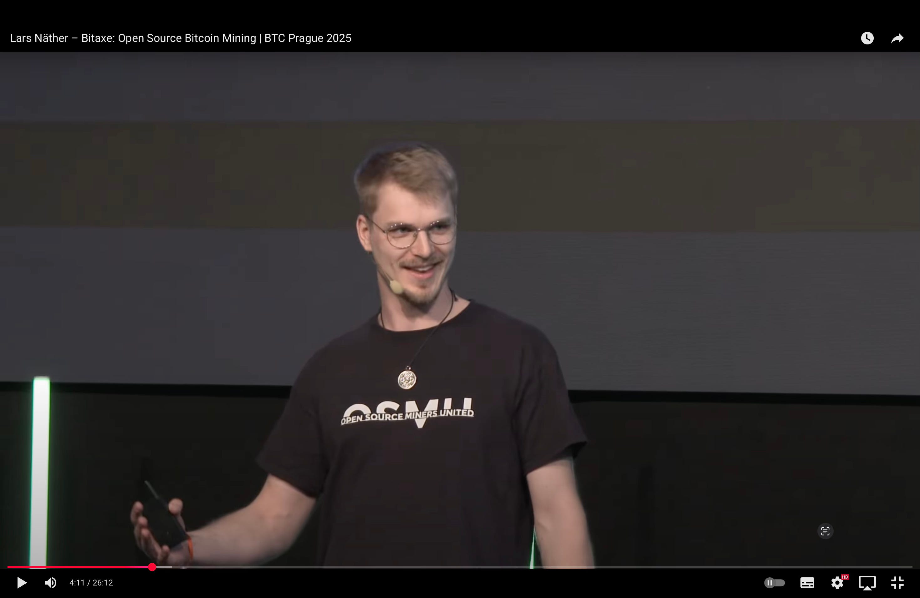 このニュースレターの読者の中には Bitaxe ファンや保有者も多いと思いますが、今回の講演はマイニングの分散化について改めて考えさせられる内容でした。