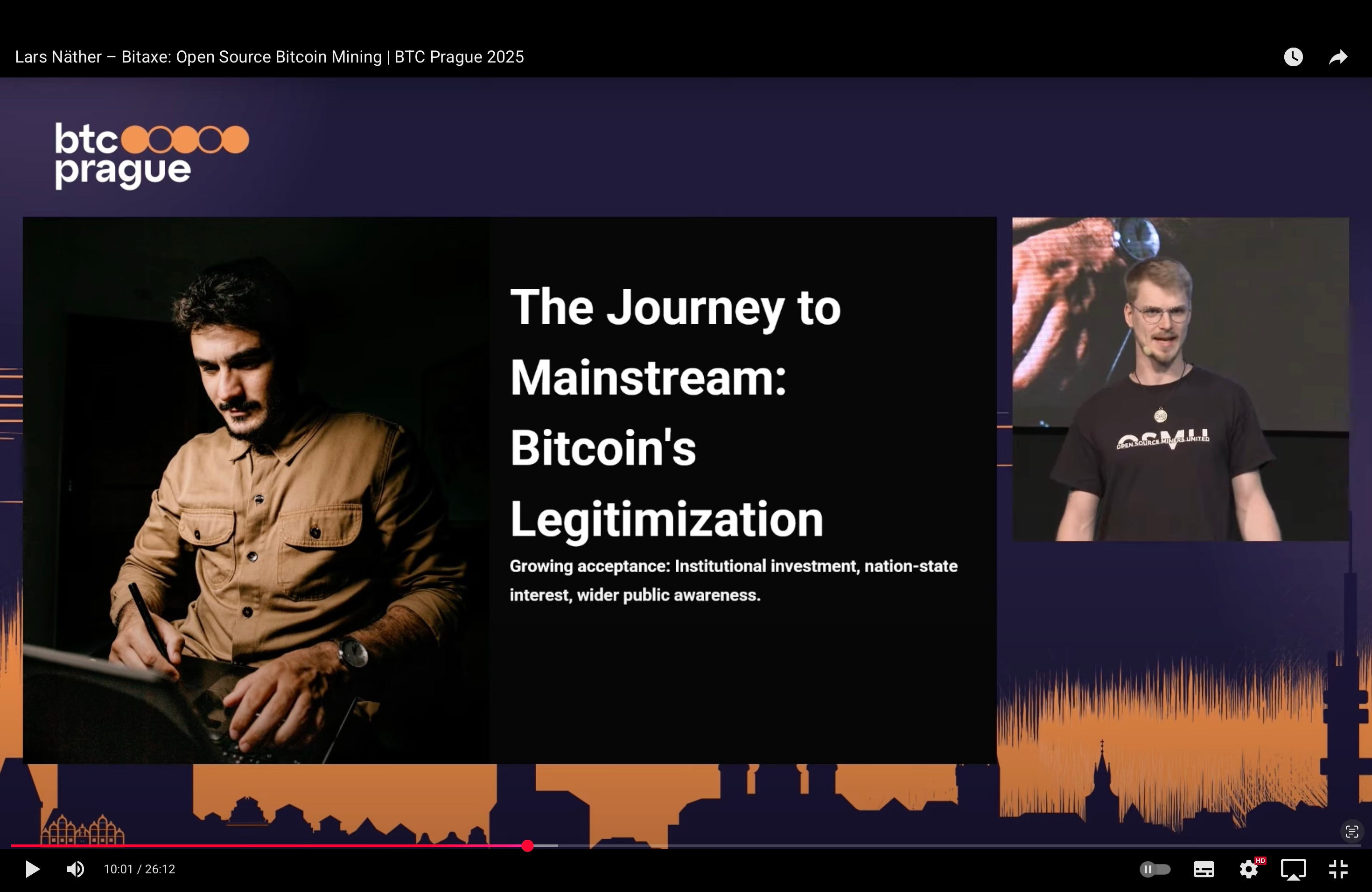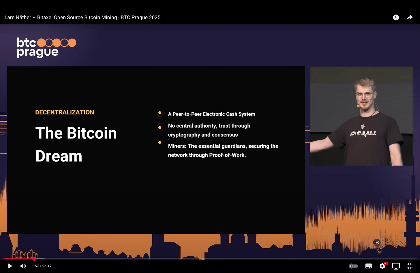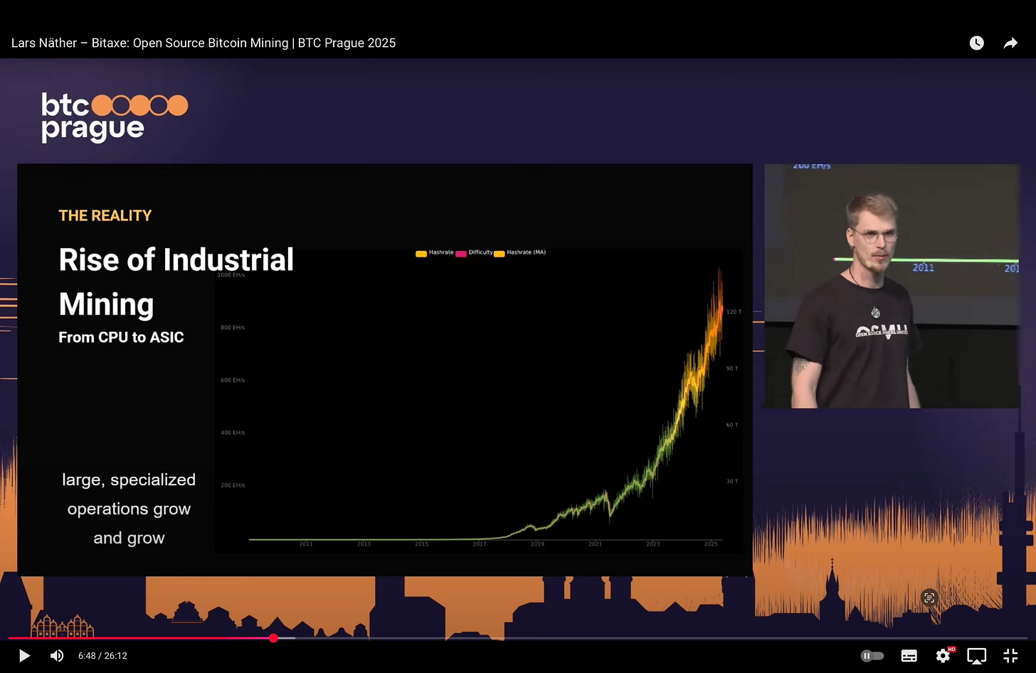 このニュースレターの読者の中には Bitaxe ファンや保有者も多いと思いますが、今回の講演はマイニングの分散化について改めて考えさせられる内容でした。
