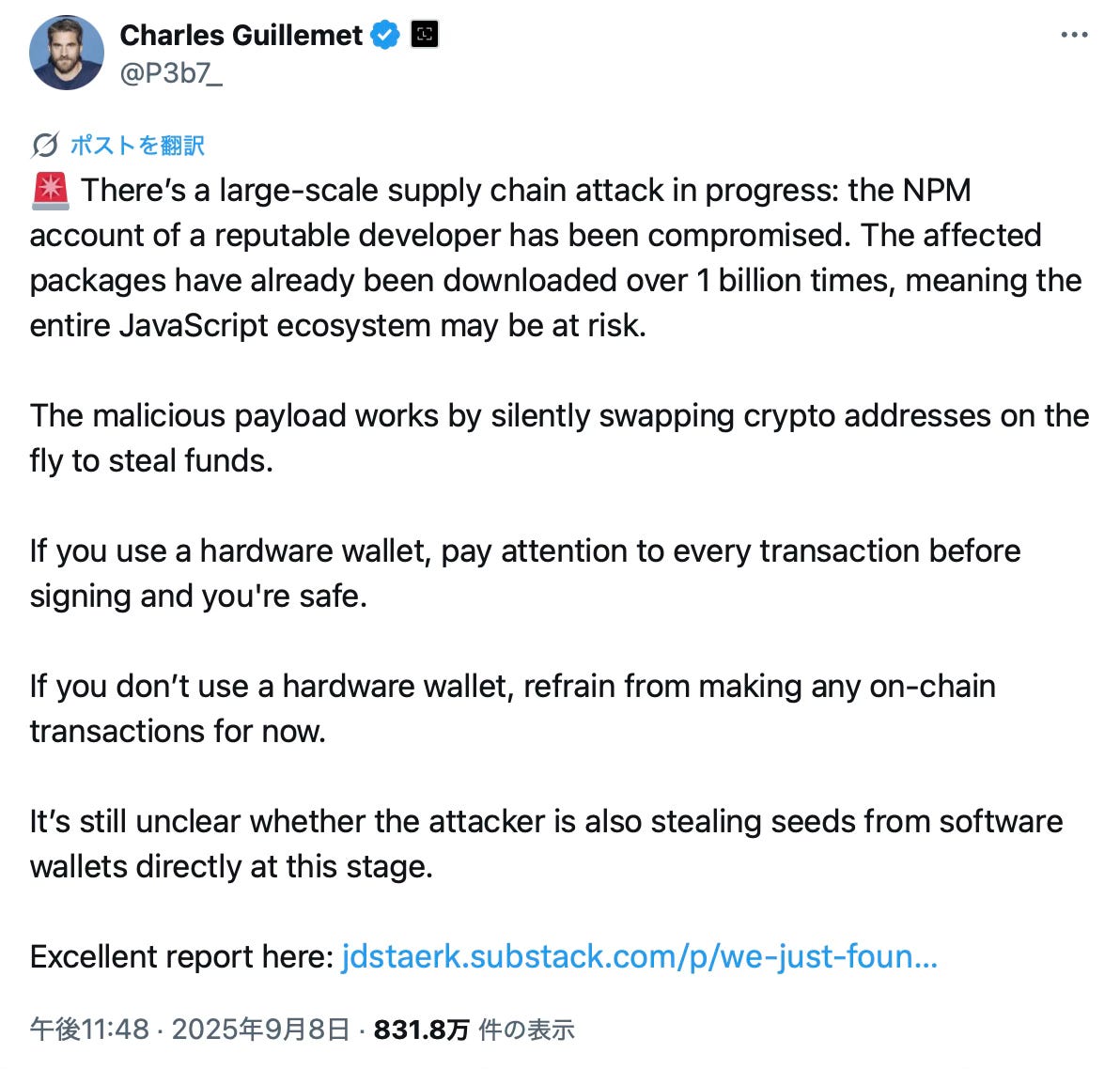 JavaScriptエコシステムを揺るがしたNPMサプライチェーン攻撃の全貌 / 安全が確認されたビットコインウォレットと実務ガイド