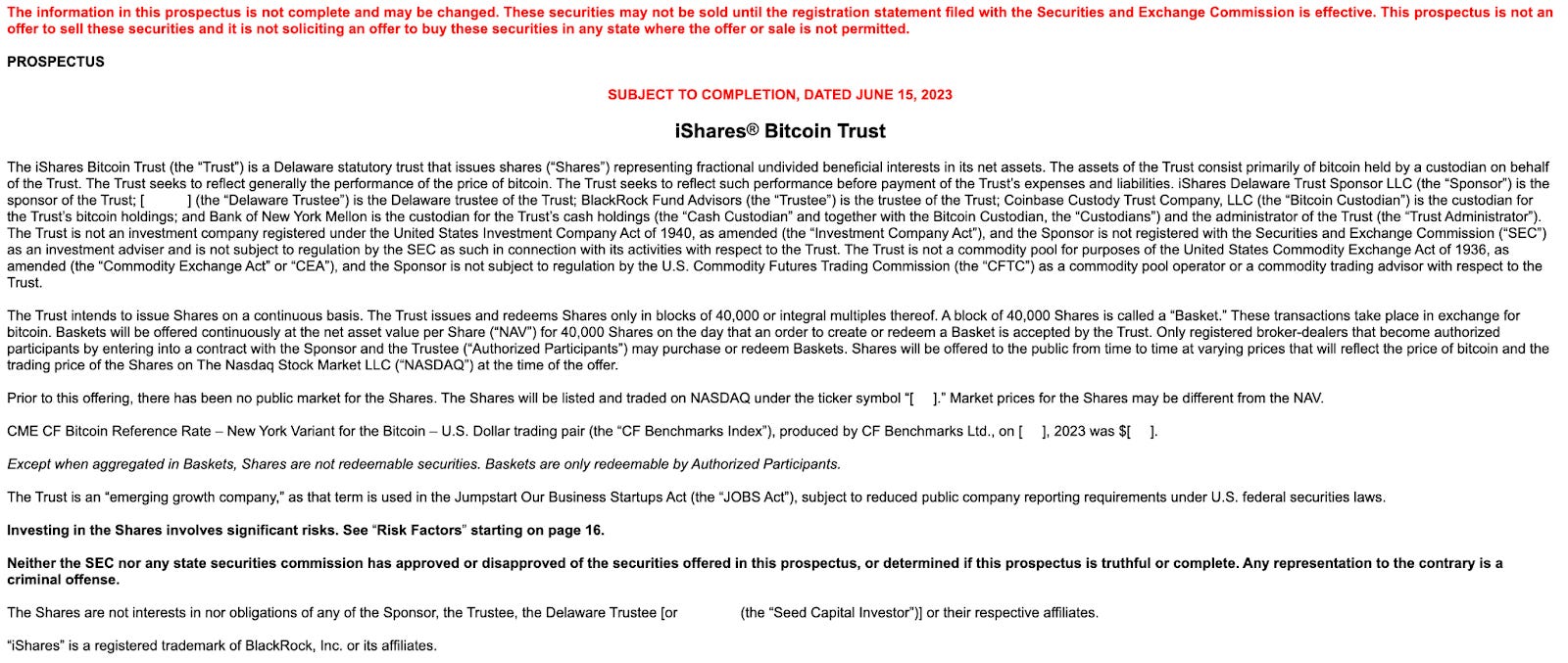 BlackRockが「iShares® Bitcoin Trust」の申請を米SECに提出しました。