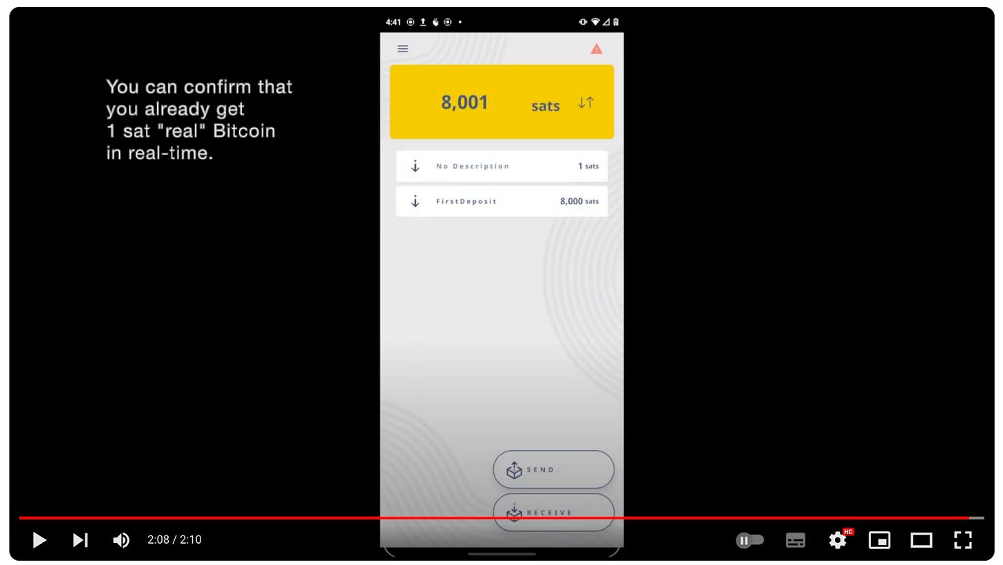Sarutobi などのサポートされている Lapps (Lightning アプリ) で sats を獲得し、ウォレットに自動的に取り込む様子のデモ動画です。
