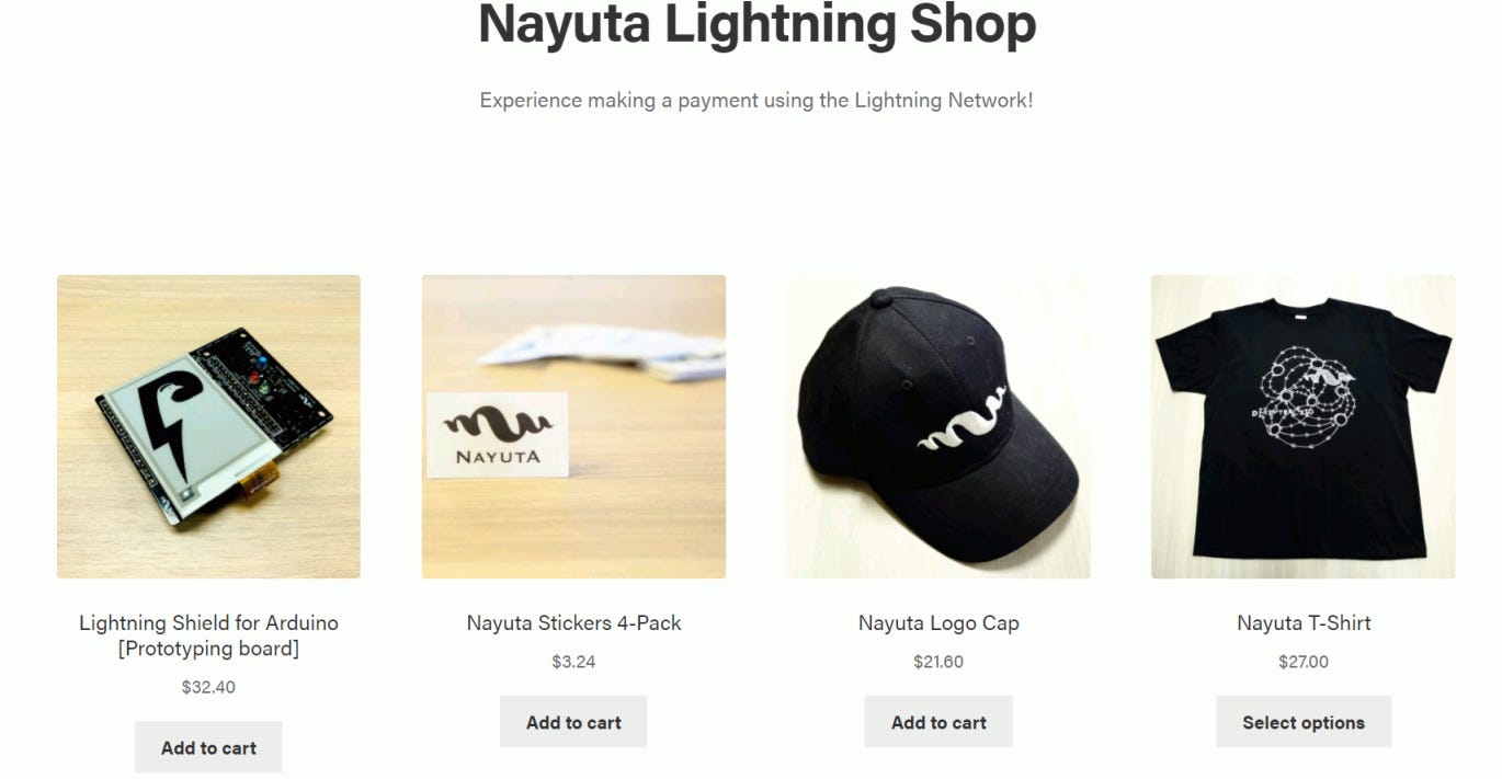 ロゴキャップやTシャツおよびプロトタイピングボードの購入でLightning Network決済を受け付ける「Nayuta Lightning Shop」を2019年4月から2022年2月にかけて開設していました。