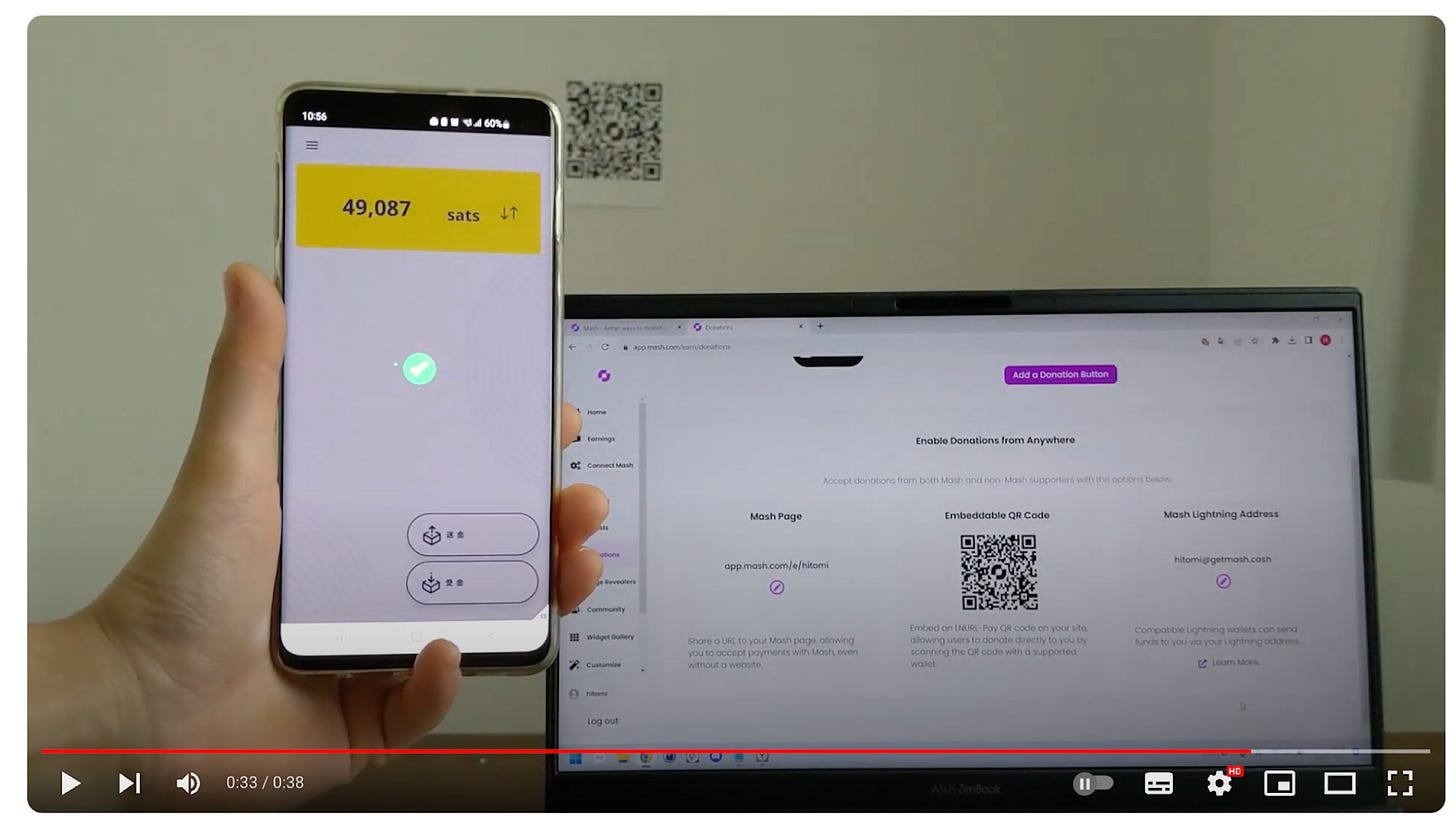 このデモ動画では、Lightning Networkのマネタイズサービス「Mash」を利用しています。