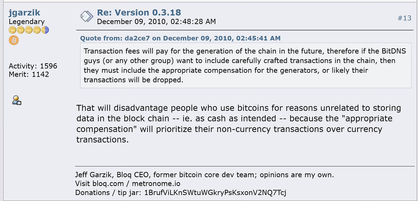 しかし @jgarzik は納得しておらず、通貨以外の用途によって、ビットコインをお金として使いたい人々が締め出されるのを嫌がっていました。