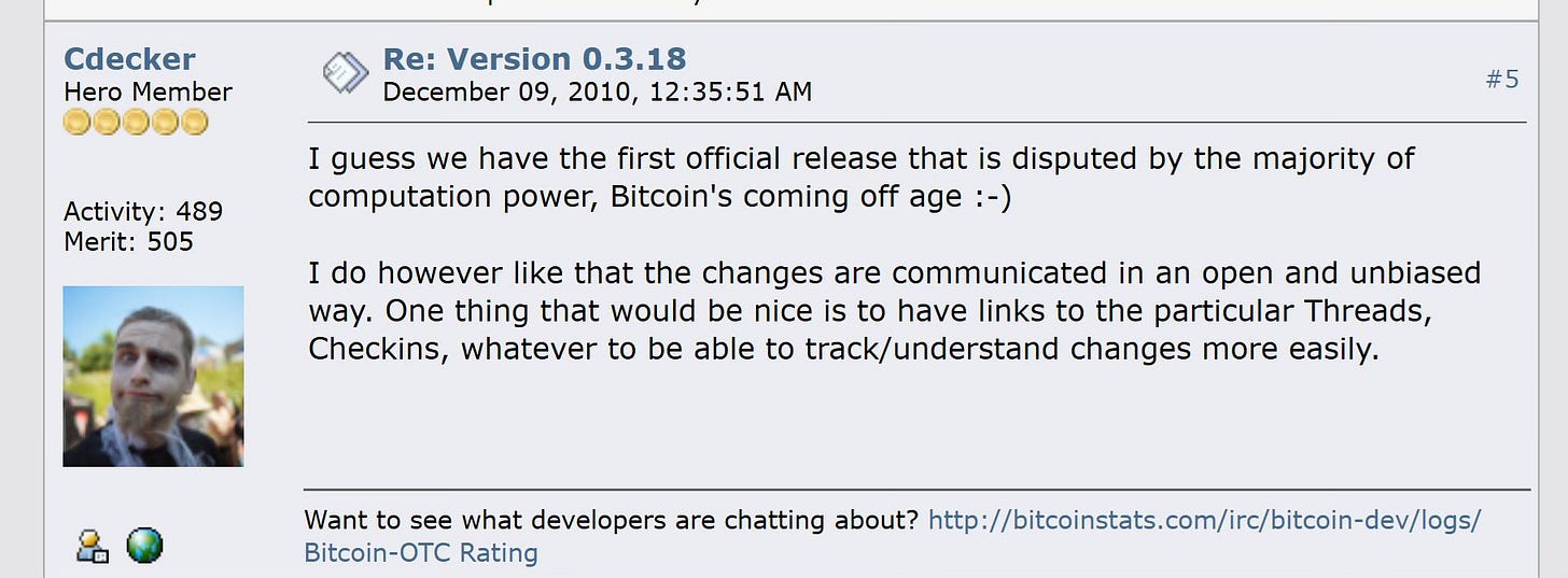 「これは [Bitcoin] の最初のアップデートで、すぐに飛びついて入手したいと思えなかったものだ」