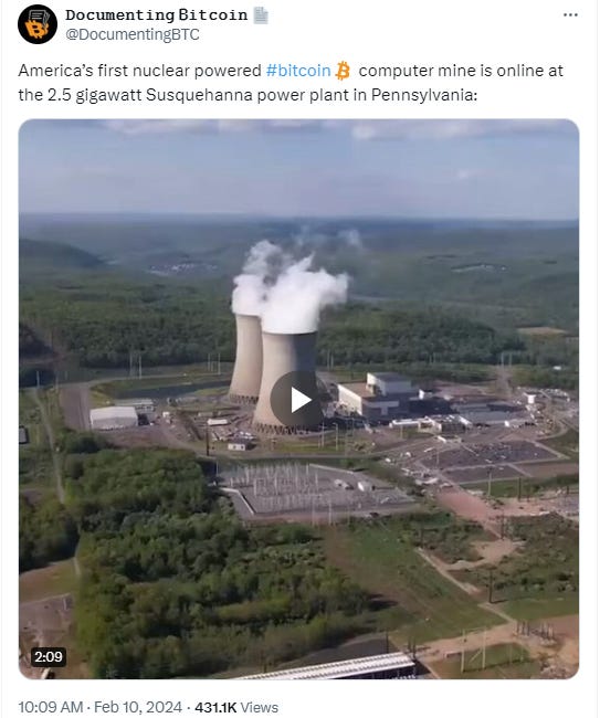 米国初、ペンシルバニア州にマイニング施設併設の原子力発電所