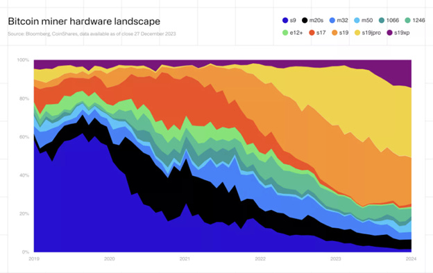 現在ビットコインに使用されているマイニング機器は多種であり、消費電力レベル、ハッシュパワー、そしてその結果としての効率も様々です。歴史的に、この多様性により、マイニングの全体的な効率を判断することは困難でした。
